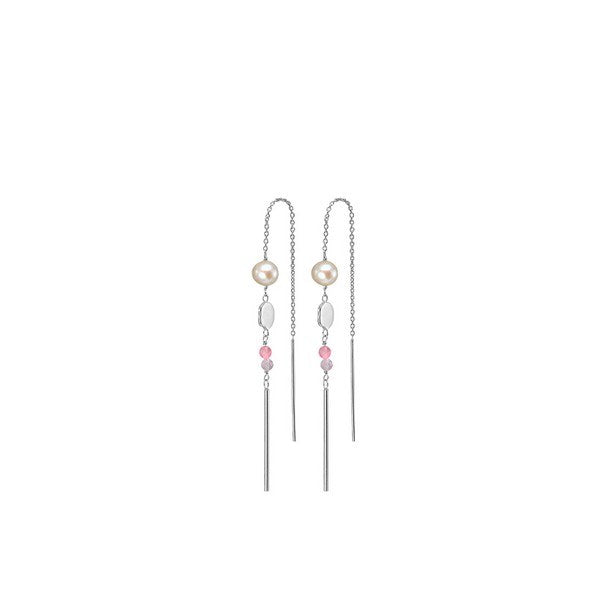 Aagaard ørekæder i sølv med pink og lilla sten samt hvide perler