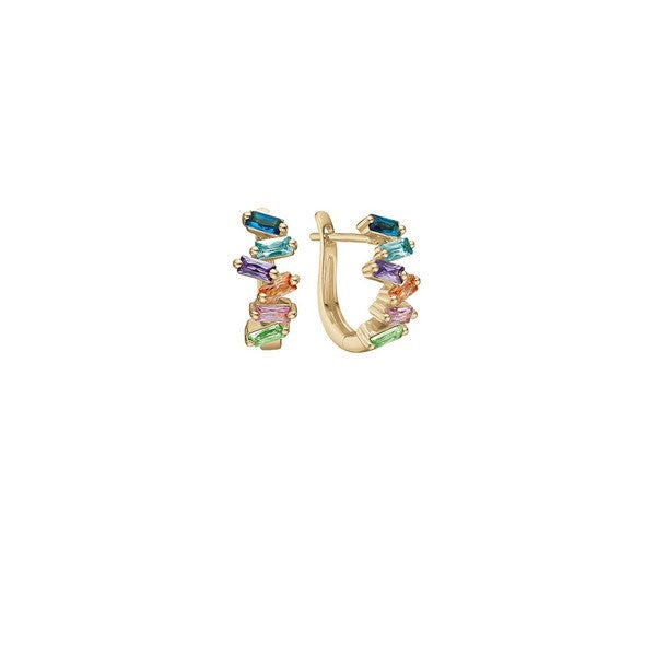 Aagaard øreringe i forgyldt sølv med multifarvede baguette sten