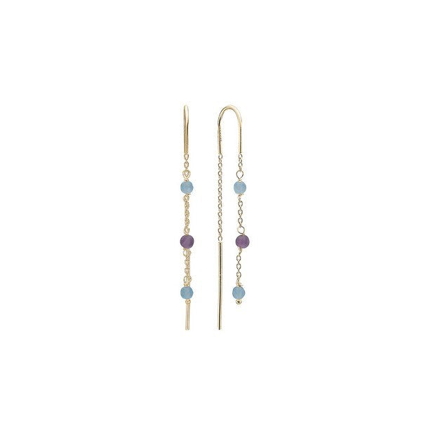 Aagaard ørekæder i forgyldt sølv med amethyst og blå quartz