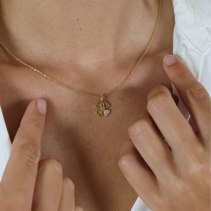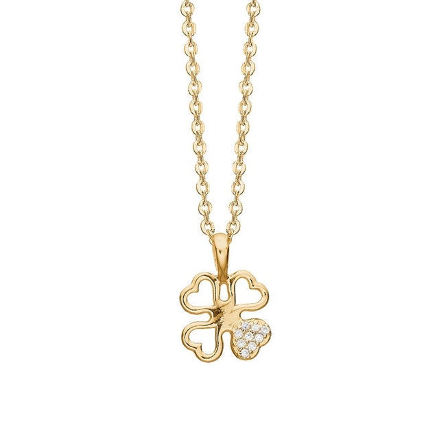 Aagaard halskæde i 8 kt guld med kløver vedhæng og zirkonia 45 cm