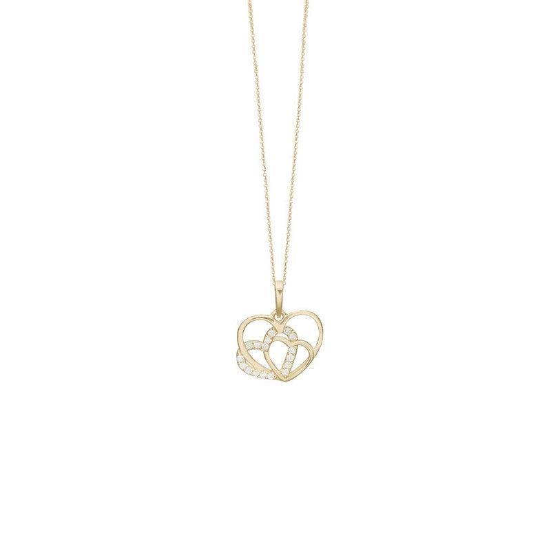 Aagaard vedhæng i 8 kt guld med tre hjerter og zirkonia, inkl. forgyldt kæde 45 cm