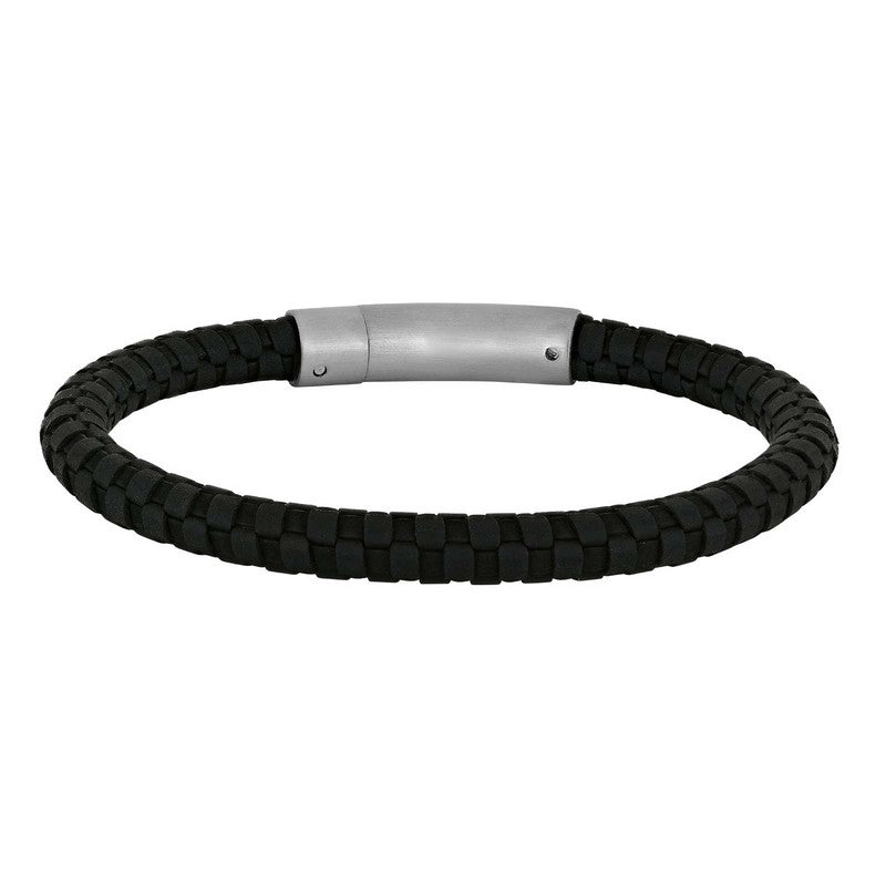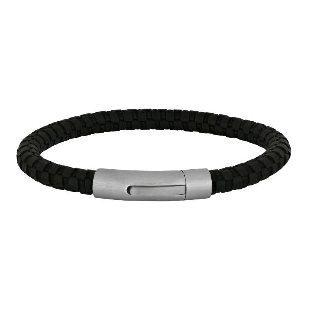 Son of Noa herrearmbånd i sort flettet kalvelæder med stållås 19–23 cm