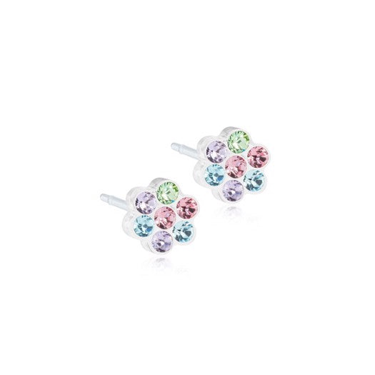 Blomdahl Daisy øreringe i medicinsk plastik med pastel zirkonia, 5 mm