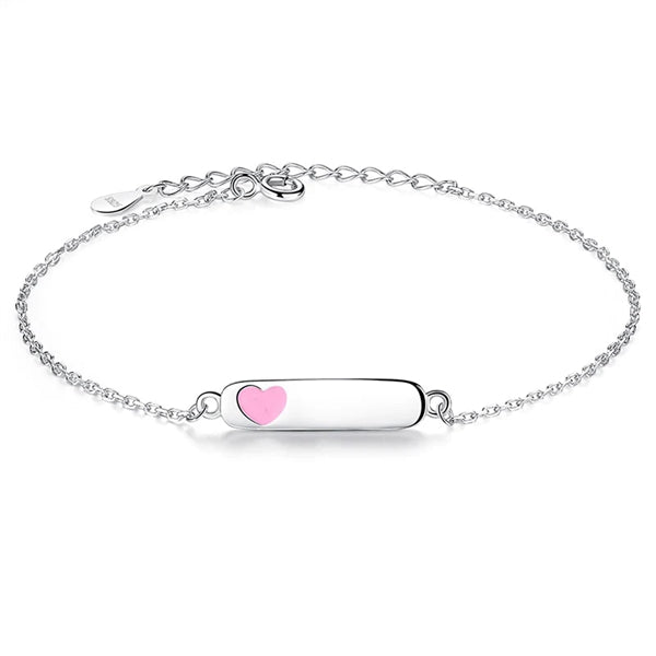 ByBirch børnearmbånd i sølv med lyserødt hjerte og plade