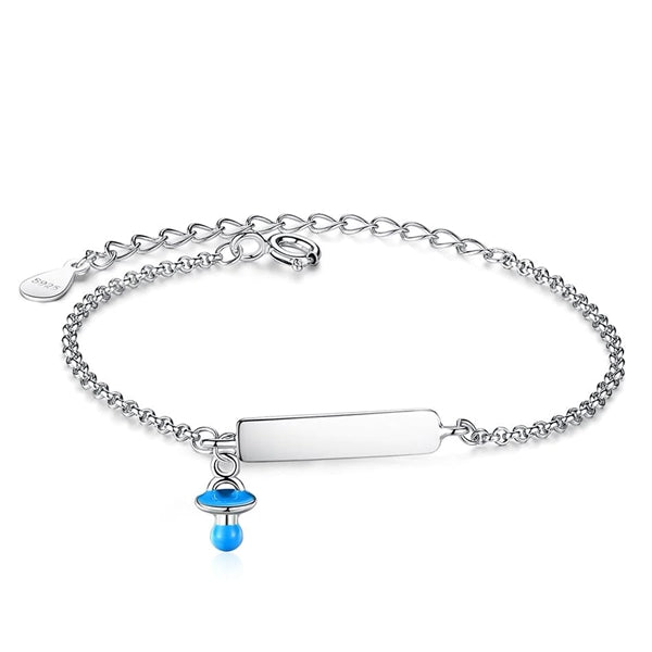 ByBirch børnearmbånd i sølv med blåt vedhæng 11+4 cm