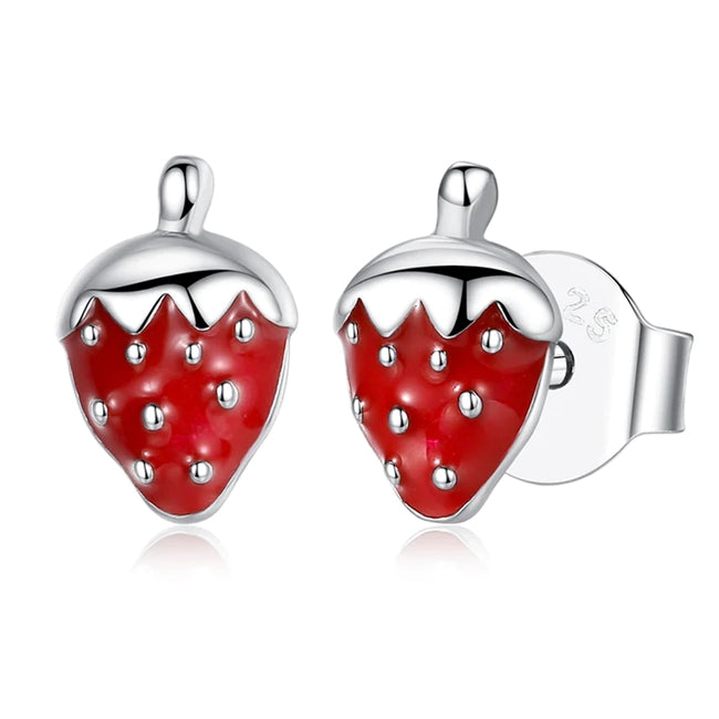 Disse fine øreringe fra ByBirch Kids er formet som små, livlige jordbær med to detaljerede bær på hver ørestik. Øreringene er lavet i ægte 925 sterlingsølv, hvilket giver både glans og holdbarhed, så de kan følge dit barn i mange eventyr. Med deres størrelse på kun 5x8 mm sidder de smukt i det lille barneøre uden at virke dominerende. De elegante, men barnlige former rammer plet i både hverdag og mere festlige anledninger, og de glade farver og søde motiver lokker et smil frem hos både store og små. Perfekte til børn, der elsker sjove og personlige smykker, og til forældre, der ønsker høj kvalitet og flot design fra ByBirch.