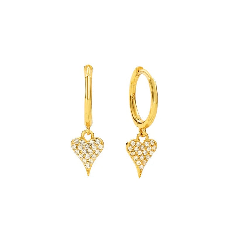 Trine hoops i forgyldt sølv med hjertevedhæng og zirkonia fra ByBirch (10 mm/20 mm)