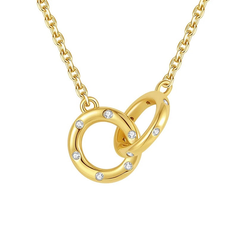 Adora halskæden er udført i 18 karat forgyldt sølv og prydet med funklende hvide zirkonia, som sidder smukt langs den ene af vedhængets to cirkler. Det tidløse og feminine design passer perfekt til både hverdag og fest, såvel til jeans som til elegante kjoler. Den elegante balance mellem form og skær giver halskæden et moderne tvist, som tiltaler kvinder i alle aldre og stilarter. ByBirch står bag smykket – et brand kendt for høj kvalitet og stærkt håndværk, hvor robusthed og klassiske linjer forenes med et cool udtryk. Halskædens længde gør, at den kan tilpasses netop dit look, uanset anledningen.