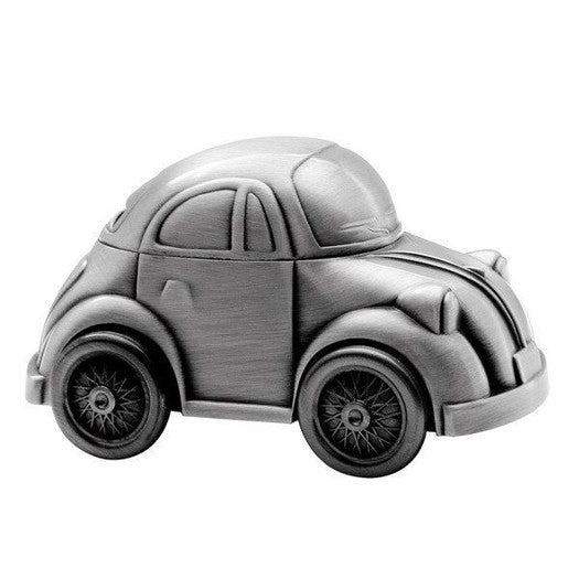 Sparebøssen er smukt udformet som en klassisk folkevogn og fremstillet i fortinnet materiale, der giver et tidløst og stilfuldt udtryk. Den flotte bilform gør den oplagt som dåbsgave til drenge, hvor den vil pynte på børneværelset og samtidig opfordre til gode sparevaner fra starten. Med sine bløde former og fine detaljer er den både dekorativ og praktisk, og vil hurtigt blive et skatkammer for barnets første mønter og små skatte.