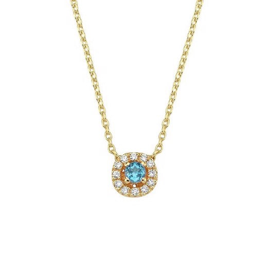 Sofia halskæde i 14 kt guld med blå topas og 0,06 ct diamanter fra Nuran