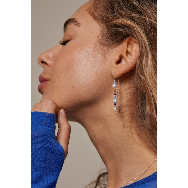 Sofia øreringe i sølv med blå og hvide perler fra Enamel Copenhagen
