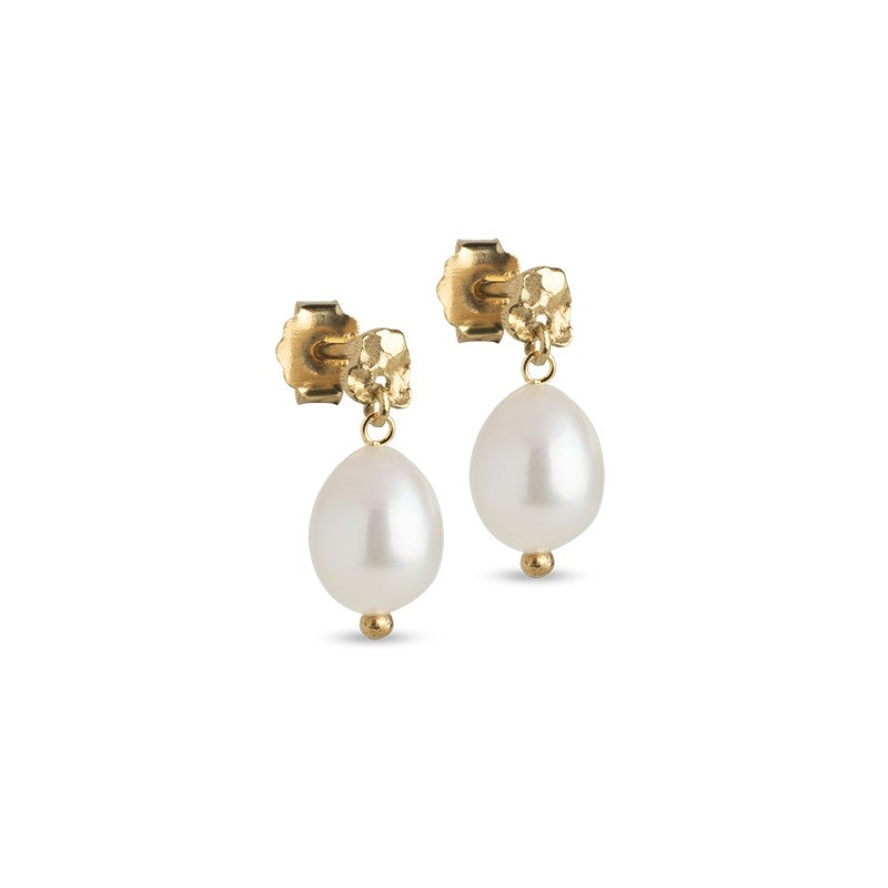 Poe perleøreringe i forgyldt sølv fra Enamel Copenhagen med perle (14 x 6 mm)