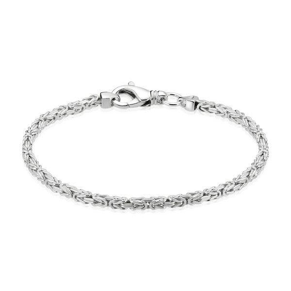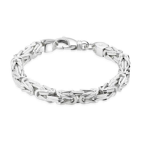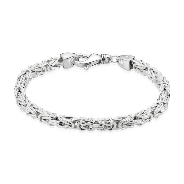 Kongearmbåndet er fremstillet i massivt 925 sterlingsølv, produceret i Danmark af BNH, som er kendt for deres solide håndværkstraditioner. Armbåndets markante mønster bygges op af bløde, kvadratiske led, hvilket giver det det karakteristiske, kraftfulde udtryk, der altid har gjort kongekæden populær blandt mænd med sans for både design og håndværk. Overfladen har en smuk, kølig glans, og den robuste karabinlås sikrer, at armbåndet bliver siddende sikkert omkring håndleddet dagen lang.