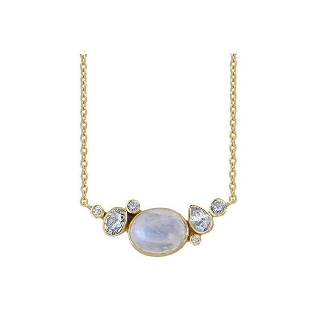 Rabinovich Blue Moon halskæde i forgyldt sølv med månesten, topas og zirkonia