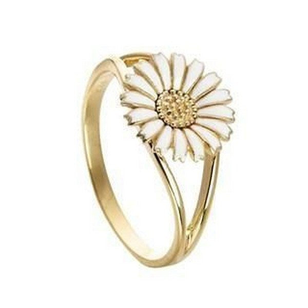 Marguerit ring fra Kranz & Ziegler i forgyldt sølv med hvid lak, 10 mm