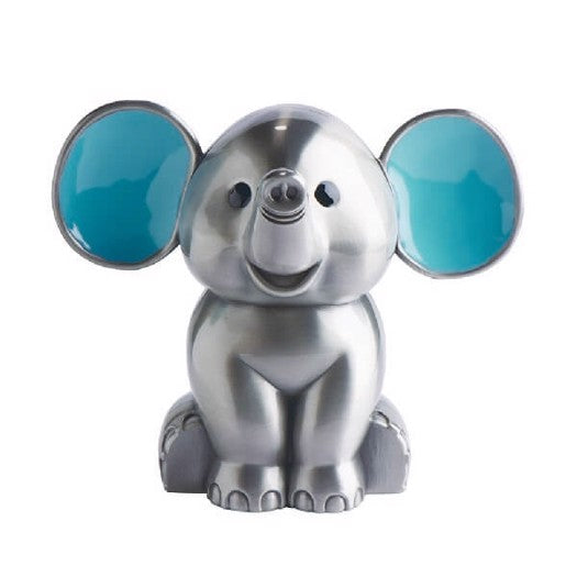 Nordahl Andersen elefant sparebøsse med blå ører, fortinnet