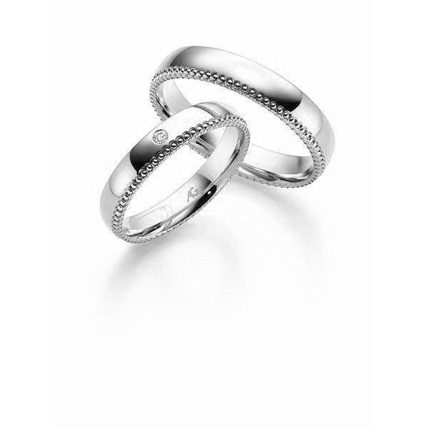 Smukke Gerstner vielsesringe i 9 eller 14 karat hvidguld med 0,03 ct diamant