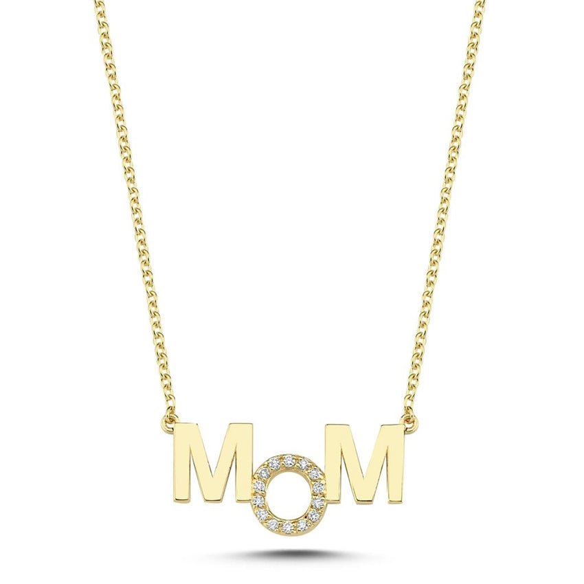 Nuran halskæde i 14 kt guld med MOM og 0,07 ct diamanter