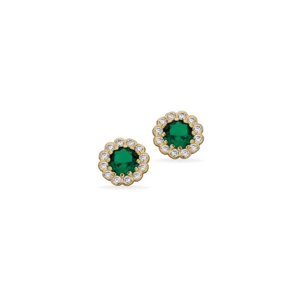 Scrouples roset ørestikker i 8 kt guld med grøn zirkonia