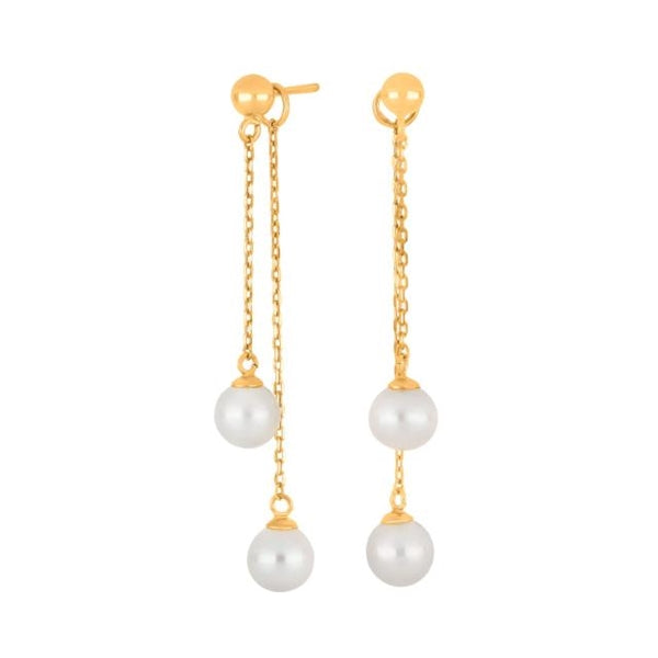 Siersbøl øreringe i 8 kt guld med kæde og ferskvandsperler