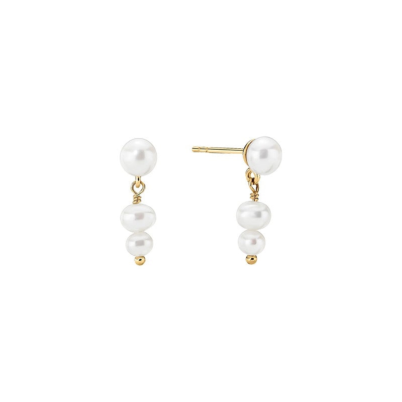 Perleøreringe i 8 kt guld med 3 perler – Lund Copenhagen