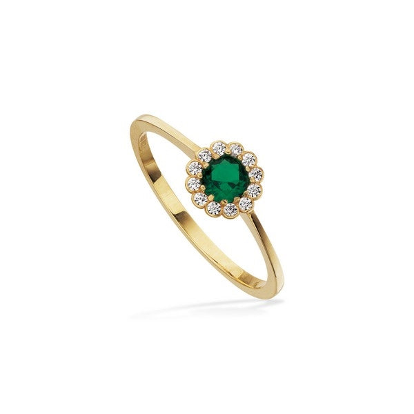 Scrouples ring i 8 karat guld med grøn og hvide zirkonia