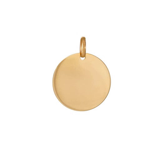 Siersbøl rundt pladevedhæng i 8 eller 14 kt guld, 18 mm