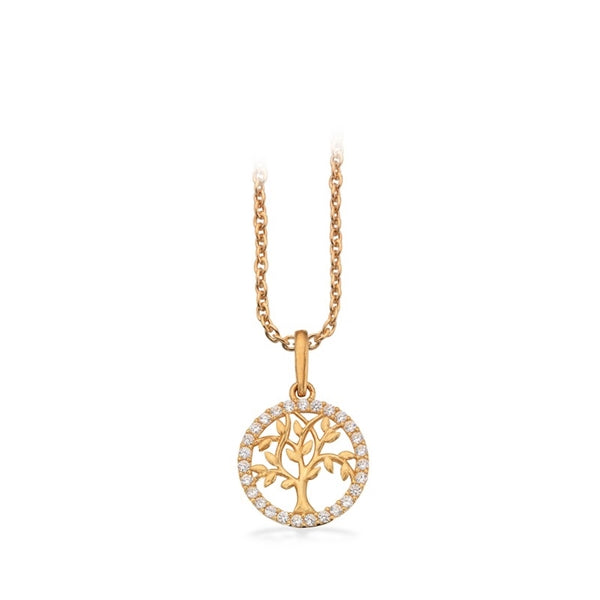 Livets træ vedhæng i 8 kt guld med zirkonia og forgyldt kæde 42+3 cm fra Scrouples