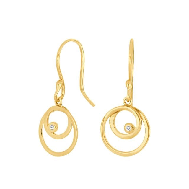 Siersbøl øreringe i 8 karat guld med dobbelt cirkelvedhæng og zirkonia, 27 mm