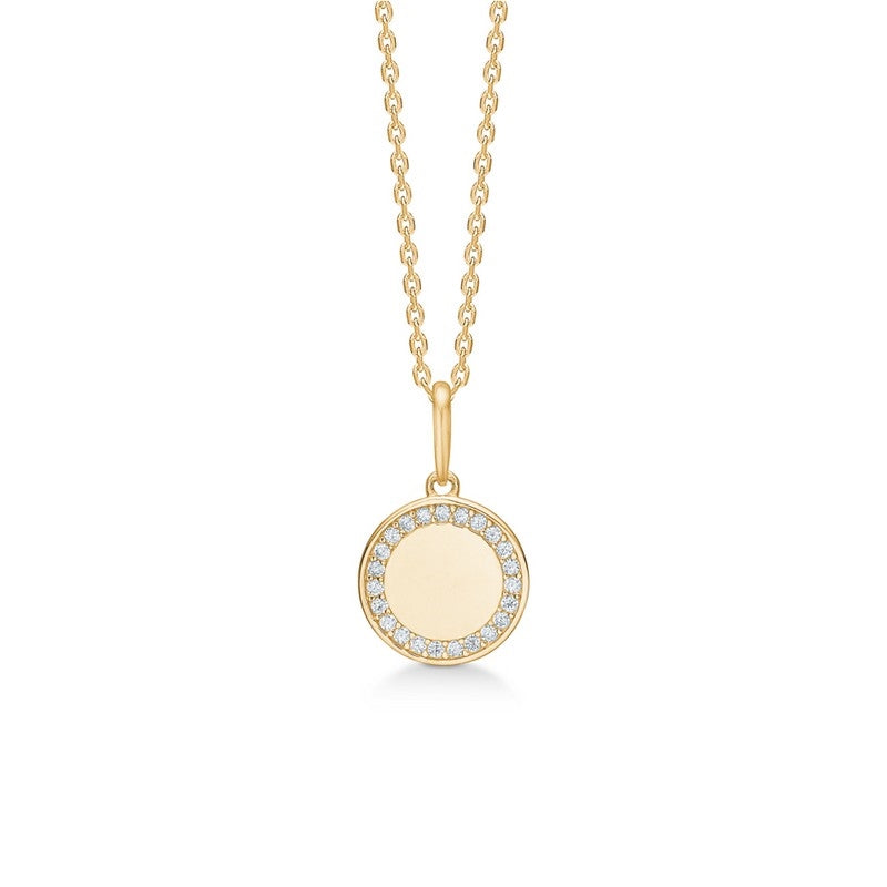 Dette fine Cara vedhæng er udført i 8 karat guld og prydet hele vejen rundt i kanten med funklende, klare zirkonia, der fanger lyset smukt fra alle vinkler. Vedhænget har en raffineret, minimalistisk form, der gør det oplagt både til hverdag og særlige anledninger. Bagsiden giver mulighed for indgravering, så du kan tilføje en personlig besked eller et navn, hvilket gør smykket til et helt særligt minde. Cara vedhænget er en del af Mads Z’s populære White Label kollektion, hvor klassiske materialer og enkelt design går hånd i hånd – skabt til dig, der sætter pris på kvalitet og diskrete detaljer.