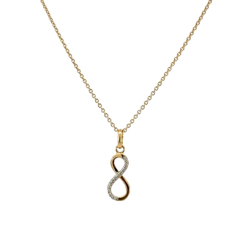 Evighedsvedhæng i 8 kt guld med zirkonia og forgyldt kæde 45 cm fra Smykkecenter