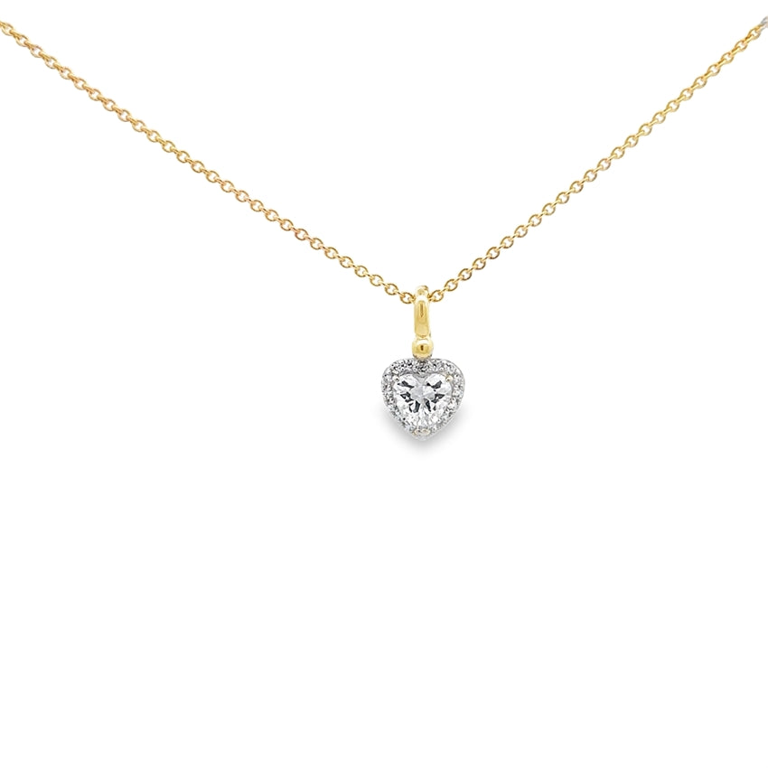 Hjertevedhæng i 8 kt guld med zirkonia og forgyldt kæde 45 cm fra Smykkecenter
