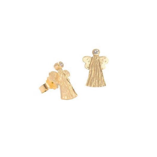 Heiring ørestikker i forgyldt sølv med zirkonia og skytsengel