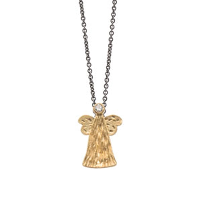Heiring vedhæng med skytsengel i forgyldt sølv og zirkonia, stor