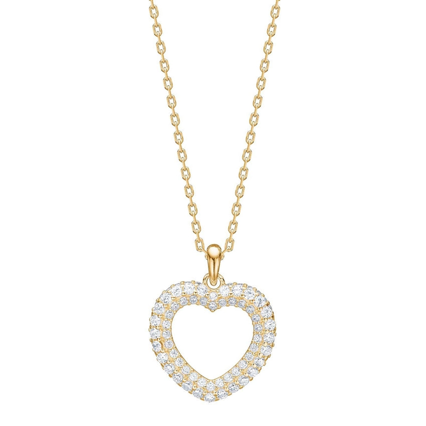 PaulaNor hjertehalskæde i forgyldt sølv fra JoanliNor med hvide zirkonia 42+3 cm