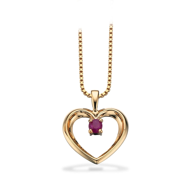 Scrouples hjertevedhæng i 14 kt guld med rubin