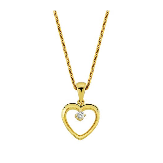 Nuran hjerte halskæde i 14 kt guld med 0,02 ct diamant og 45 cm kæde