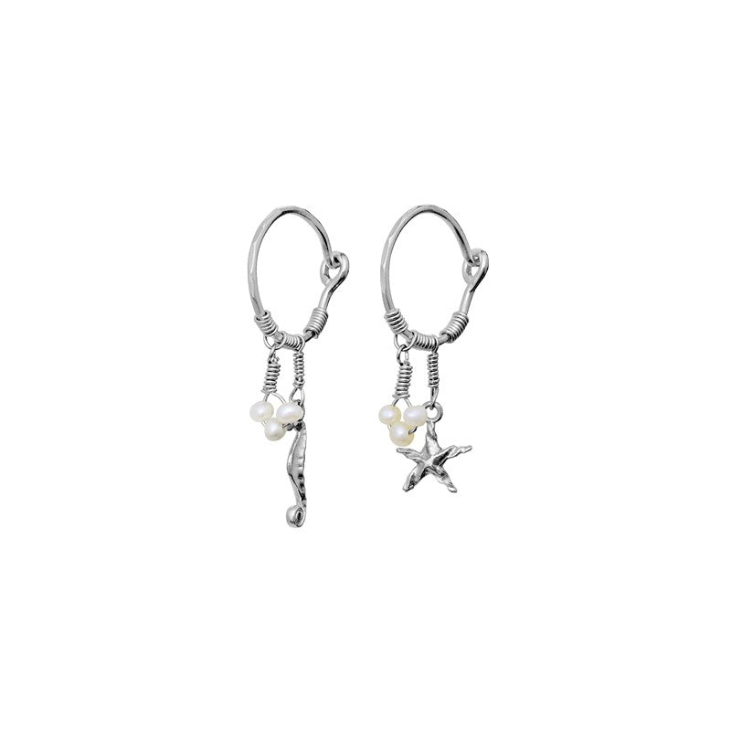 Momi øreringe fra Maanesten i sølv med søhest, søstjerne og ferskvandsperler 33 mm