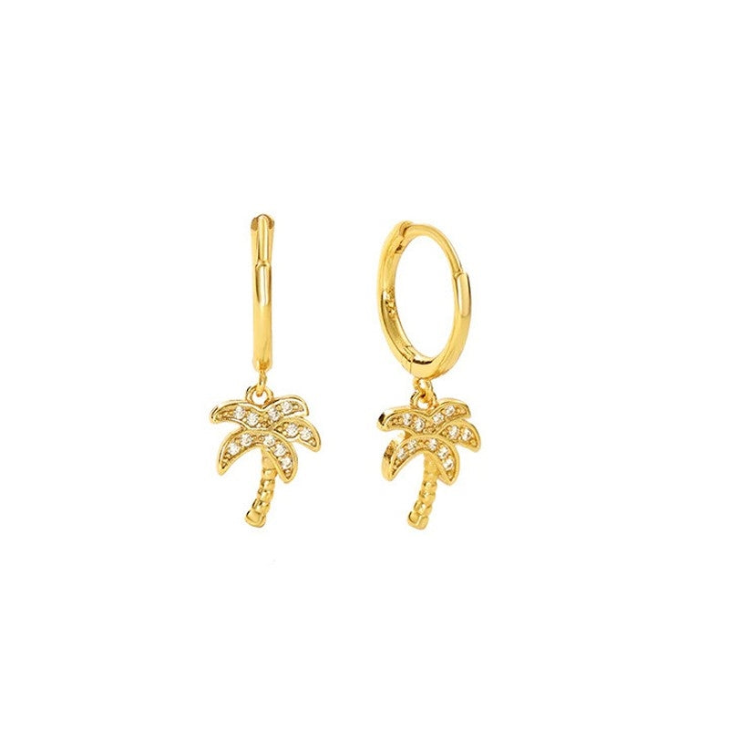 Puk creoler i forgyldt sølv med palmetræ og zirkonia fra ByBirch