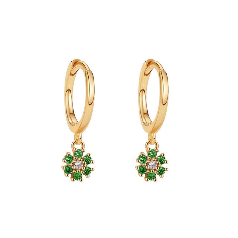 Flora forgyldte sølvcreoler med grøn blomst fra ByBirch
