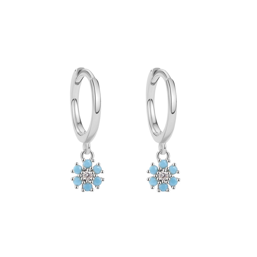 ByBirch Flora øreringene er udført i blankt sølv, der giver et eksklusivt og tidløst udtryk. De delikate creoler prydes af et lille, blå blomstervedhæng med funklende lyseblå og én hvid zirkonia – en skøn farvekombination, der tilfører liv og lethed til dit look. Med deres lette facon og diskrete størrelse klæder de både det afslappede hverdagsoutfit og mere festlige lejligheder. Øreringenes stil er klassisk og feminin – med et cool, fashionabelt præg, som hører ByBirch til. Smykket egner sig perfekt til at blive sat sammen med andre øreringe eller bæres alene som en raffineret detalje.