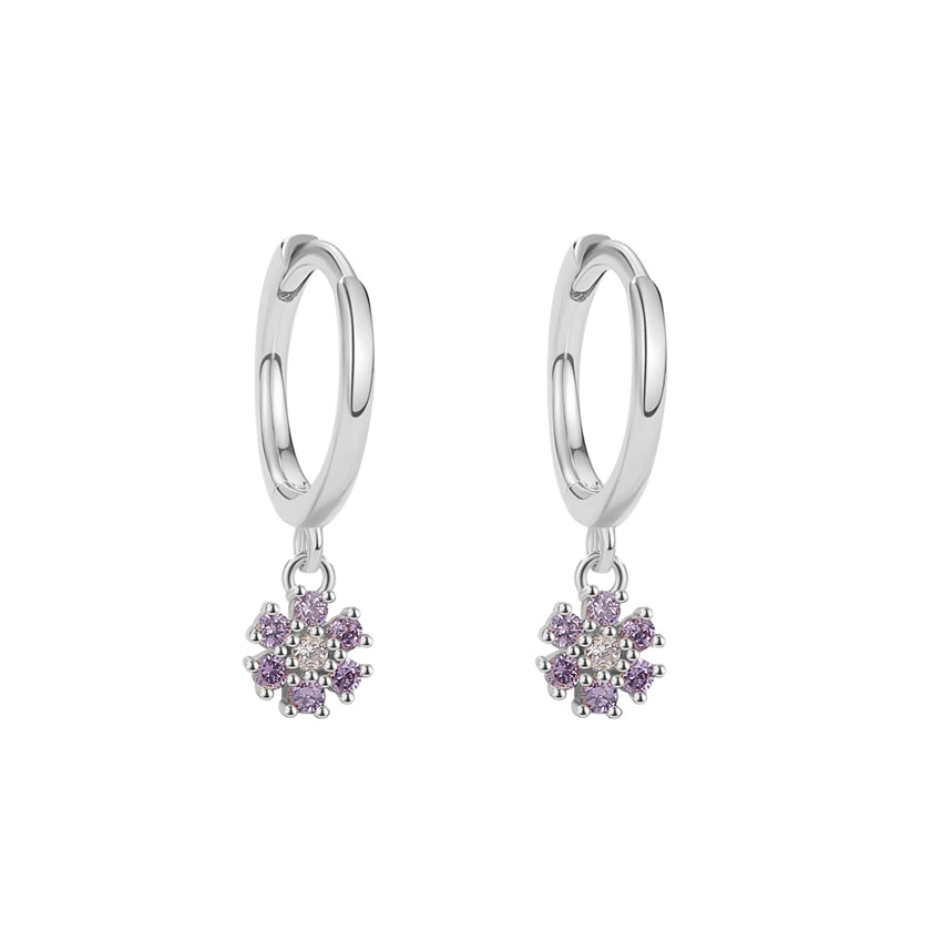 Flora creoler i sølv med lilla zirkonia fra ByBirch