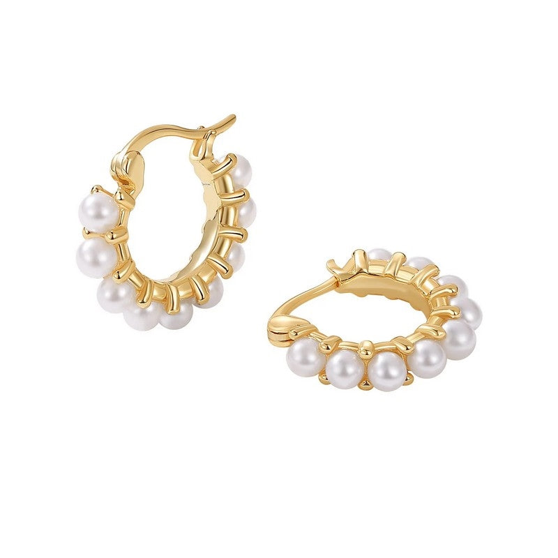 Isa creoler i forgyldt sølv med hvide perler fra MerlePerle, 17 mm