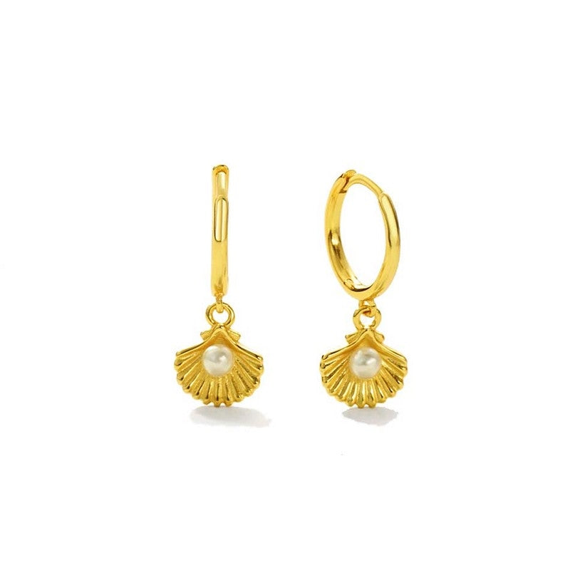 Sallie creoler i forgyldt sølv med musling og ferskvandsperle fra MerlePerle