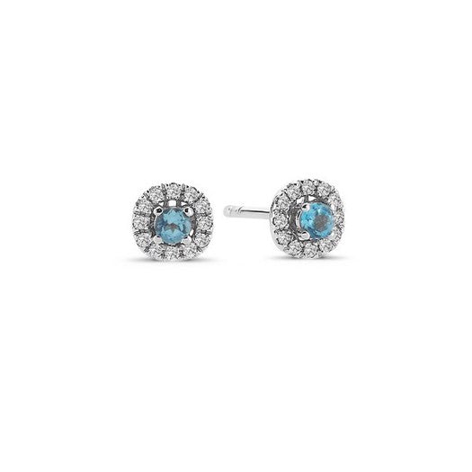 Sofia ørestikker i 14 kt hvidguld fra Nuran med blå topas og 0,12 ct diamanter