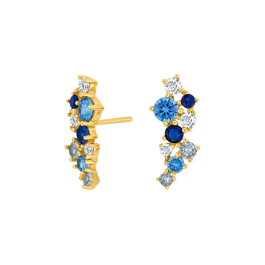 NADINENOR 3 JoanliNor ørestikker i forgyldt sølv med blå og hvide zirkoner