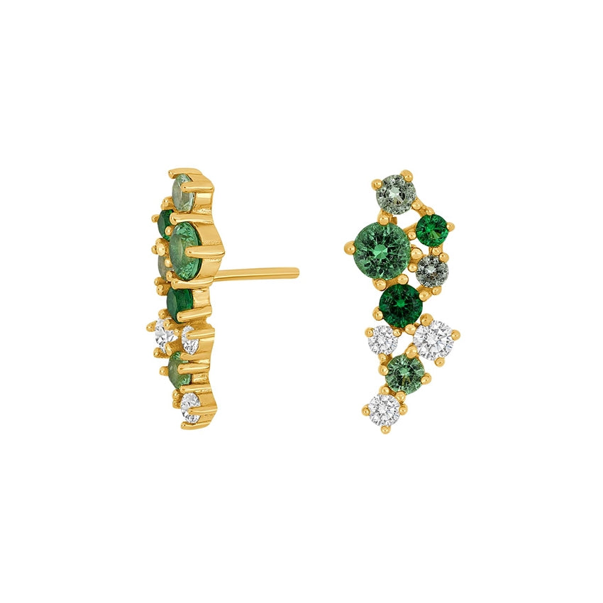 NADINENOR 3 ørestikker i forgyldt sølv med grønne zirkoner fra JoanliNor