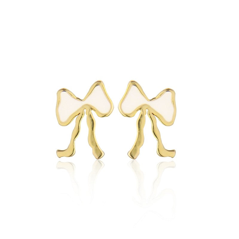 Petite Bow øreringene fra Jeberg Jewellery er udført i forgyldt sølv og prydes af smuk hvid emalje, der giver dem et friskt og elegant udseende. Med deres diskrete størrelse på ca. 5 mm er de perfekte til dig, der ønsker et underspillet men stilfuldt smykke. Ørestikkernes sløjfeform tilføjer et legende og moderne twist til ethvert outfit, uanset om det er til hverdag eller fest. Brug dem alene for et minimalistisk look, eller miks med andre ørestikker fra Jeberg Jewellery for et personligt mix-and-match udtryk.