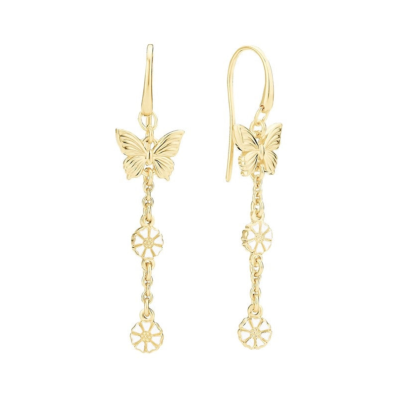 Marguerit kædeøreringe med sommerfugl i forgyldt sølv fra Lund Copenhagen