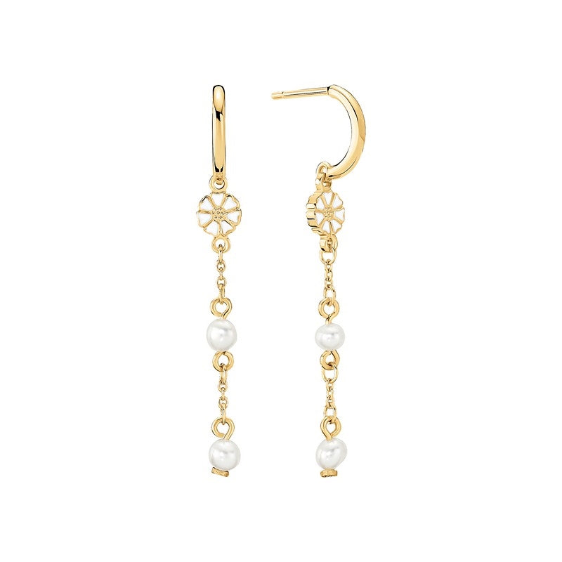 Marguerit øreringe i 24 karat forgyldt sølv med perler fra Lund Copenhagen